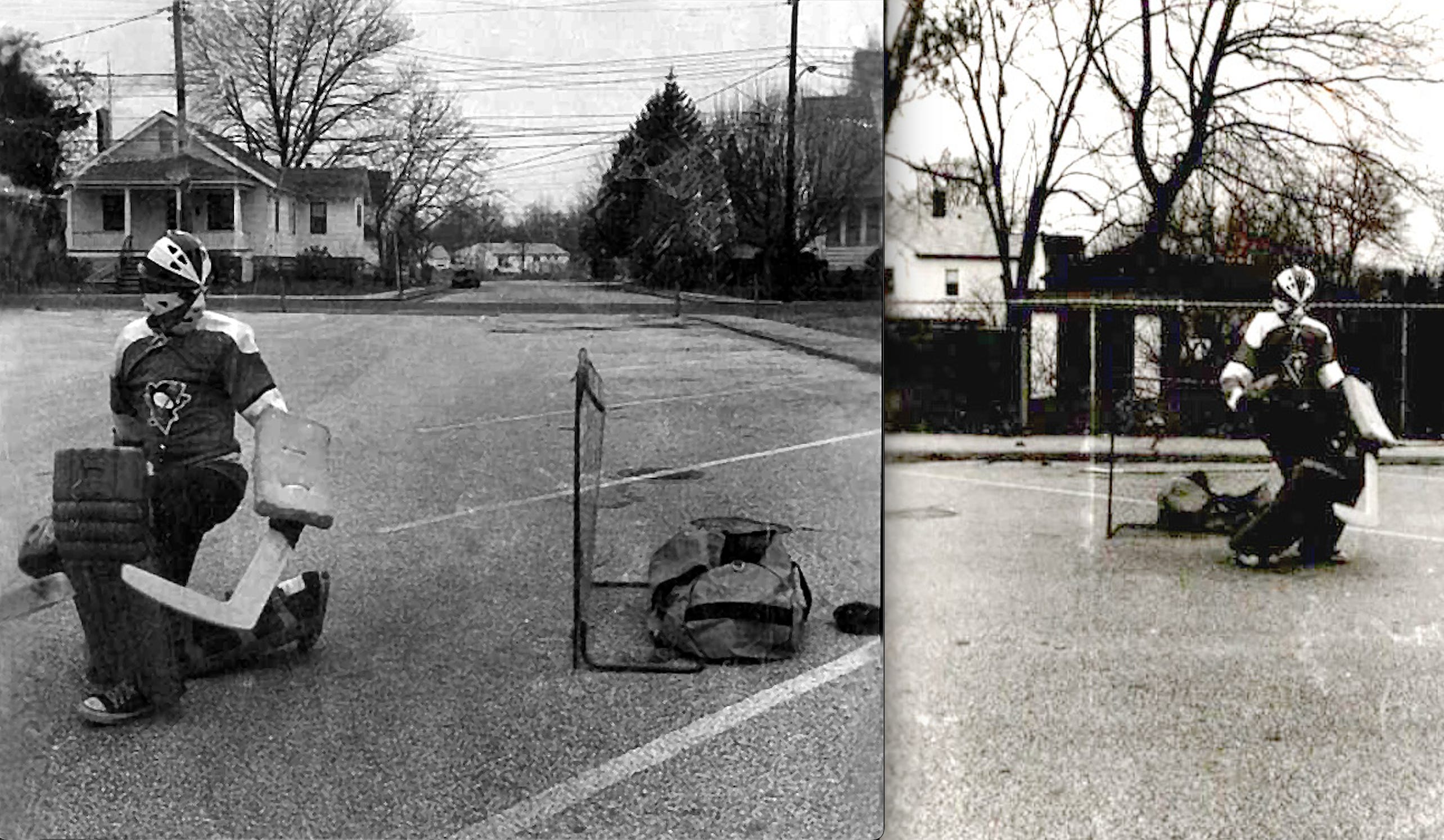 In junior high, before I gave in to the fact that I was much better shooting than I was at stopping the puck/ball. Vintage Penguins jersey. Still, looked as cool Fuck.
