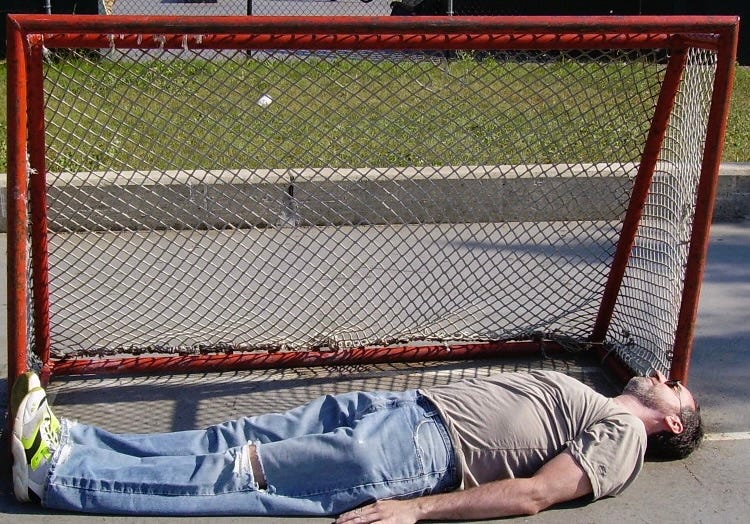 Proving to my wife that NHL nets are 6’x4’. I’m 6’-1”.