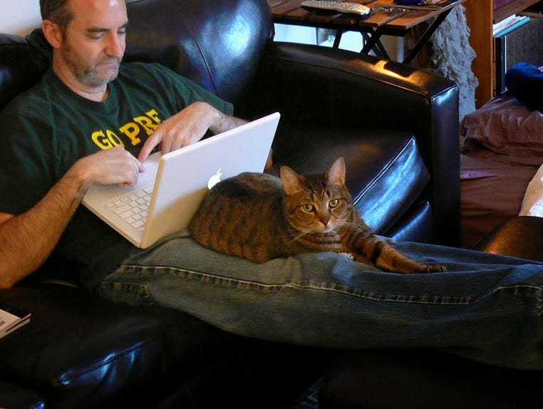 Me.“blogging” accompanied by the best cat any human could ever hope for.
