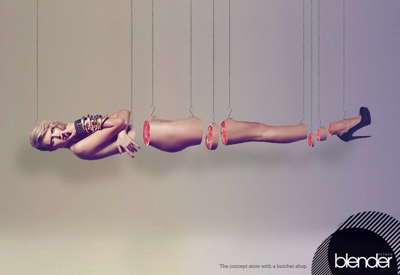 Some Photoshop Body-Chop. Istanbul's Beymen Blender is/was a fashion concept store that's also a butcher shop (for Cannibals, I guess). Anyway, this here is some unsharp Damien Hirst-esque digital meat cutting and rendering Rafineri (the responsible Turkish ad agency).